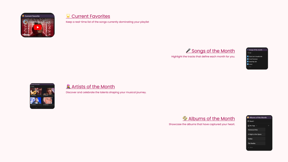 Immerse yourself in the world of music with our Notion Music Tracker! πΆβ¨ This digital template is designed to revolutionize how you engage with your favorite tunes.